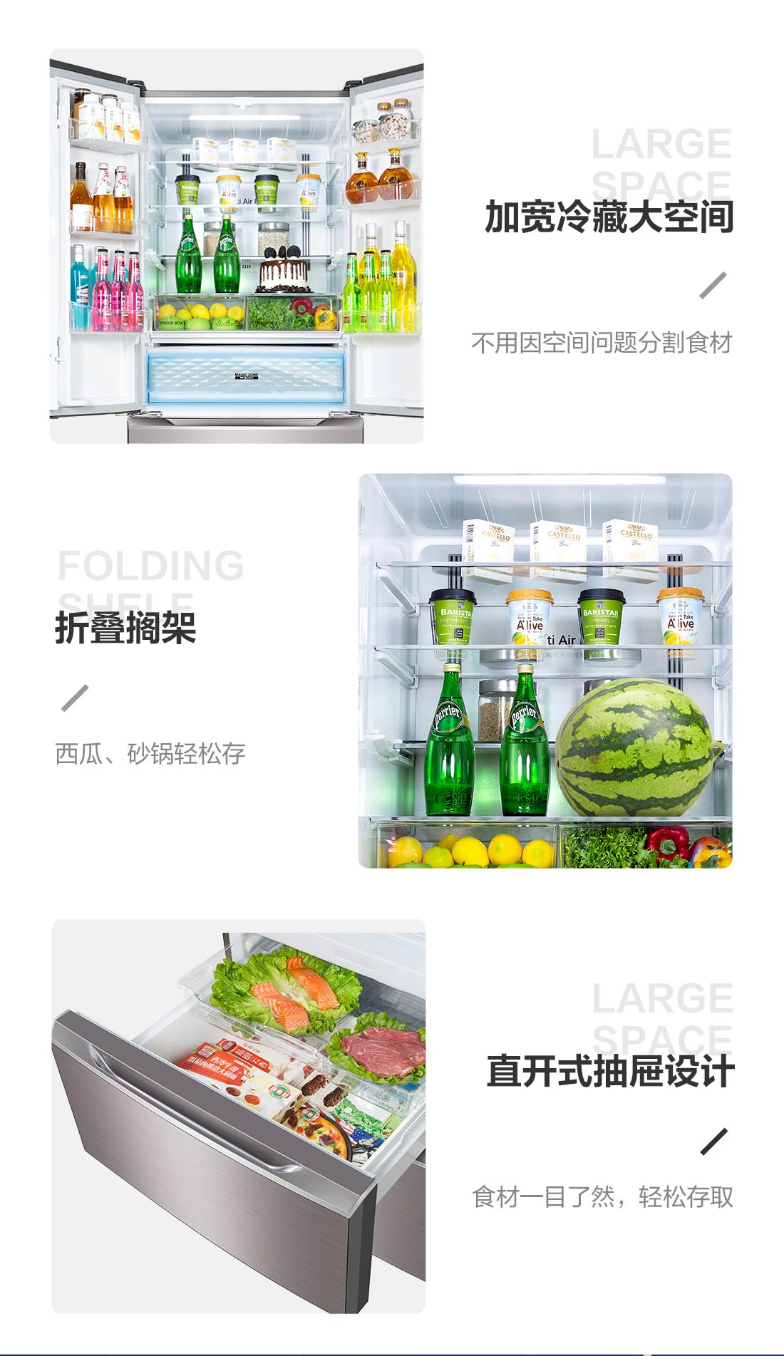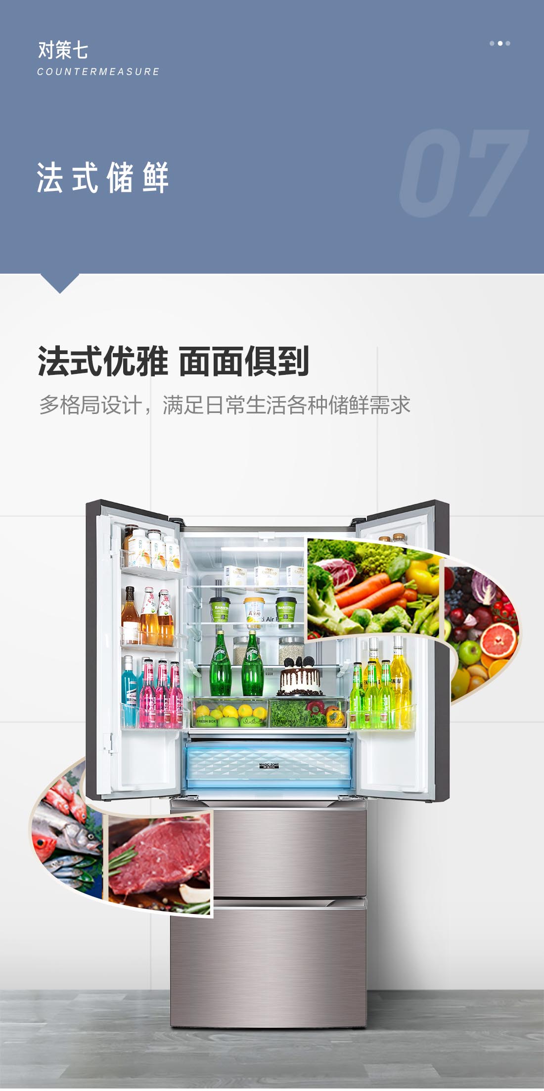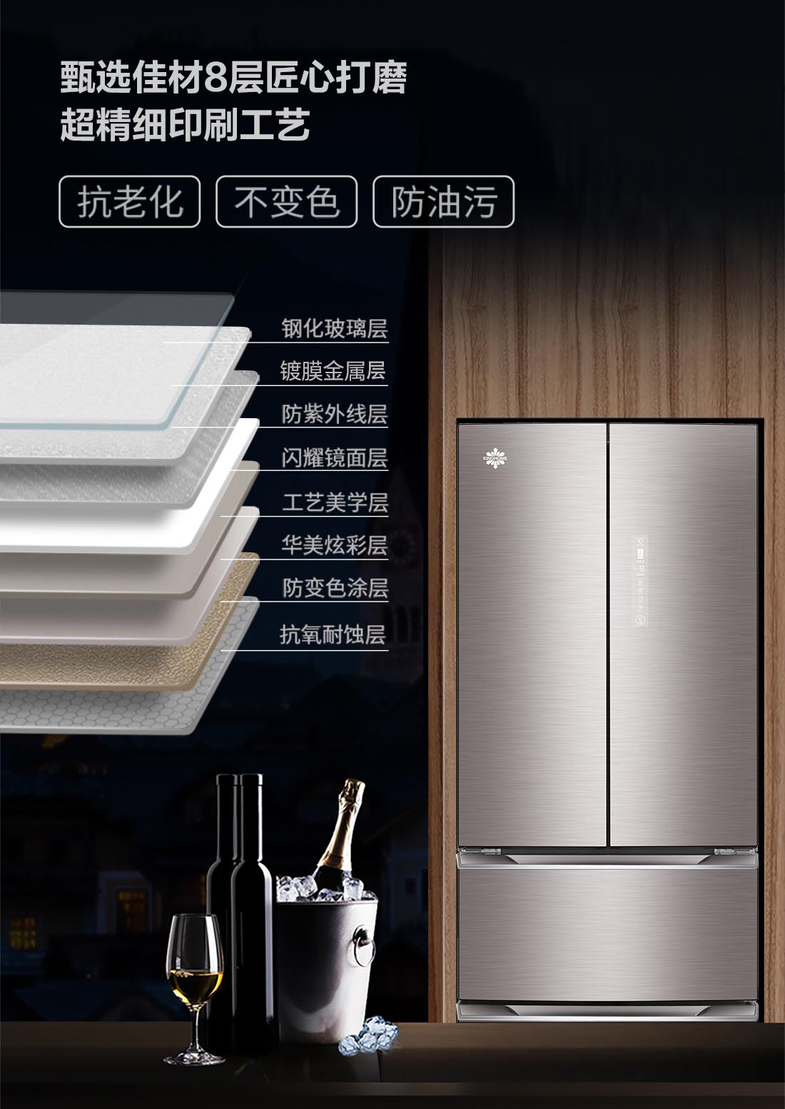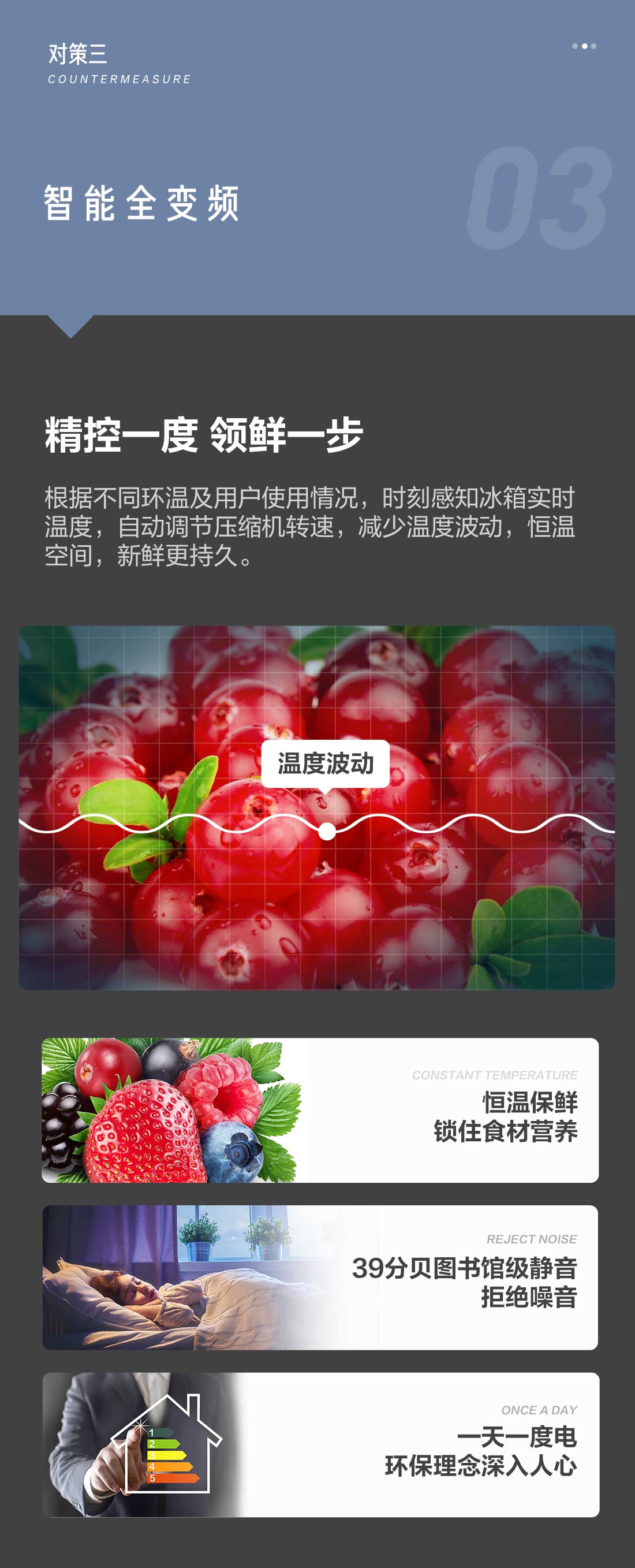 搭載-5℃瞬凍黑科技,鮮嫩兩星期,輕松一刀切。細(xì)胞級養(yǎng)鮮,營養(yǎng)流失少。搭載-3℃嫩凍黑科技,食材不結(jié)冰,鮮嫩一整周。智能全變頻技術(shù),恒溫保鮮,節(jié)能靜音。